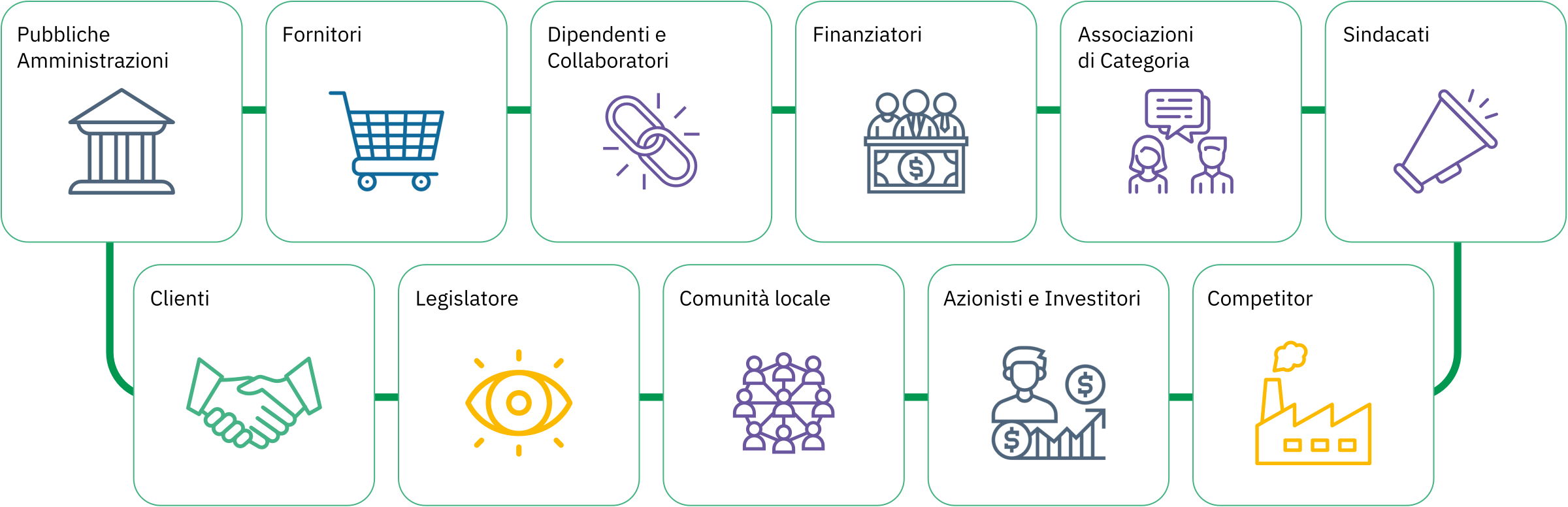 L’identificazione dei temi materiali si basa soprattutto sulla comprensione delle istanze degli stakeholder, i cui interessi sono e/o potrebbero essere influenzati dalle attività del Gruppo.